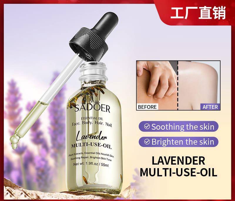 SADOER Масло лаванды для лица, тела, волос, ногтей, 55мл.