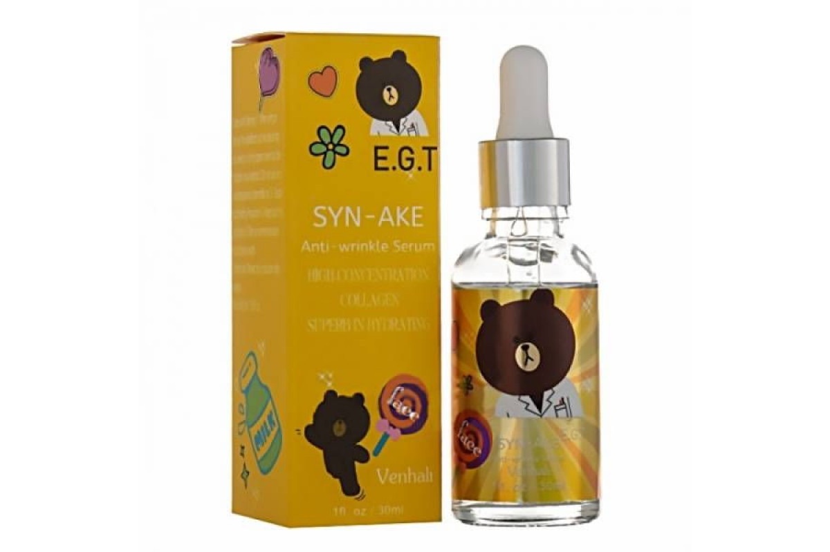 Venhali Syn-Ake - концентрированная антивозрастная сыворотка для разглаживания морщинок и продления молодости кожи. Регулярное использование сыворотки помогает ликвидировать «гусиные лапки» в уголках глаз, горизонтальные и вертикальные морщинки на лбу, носогубные складки.
